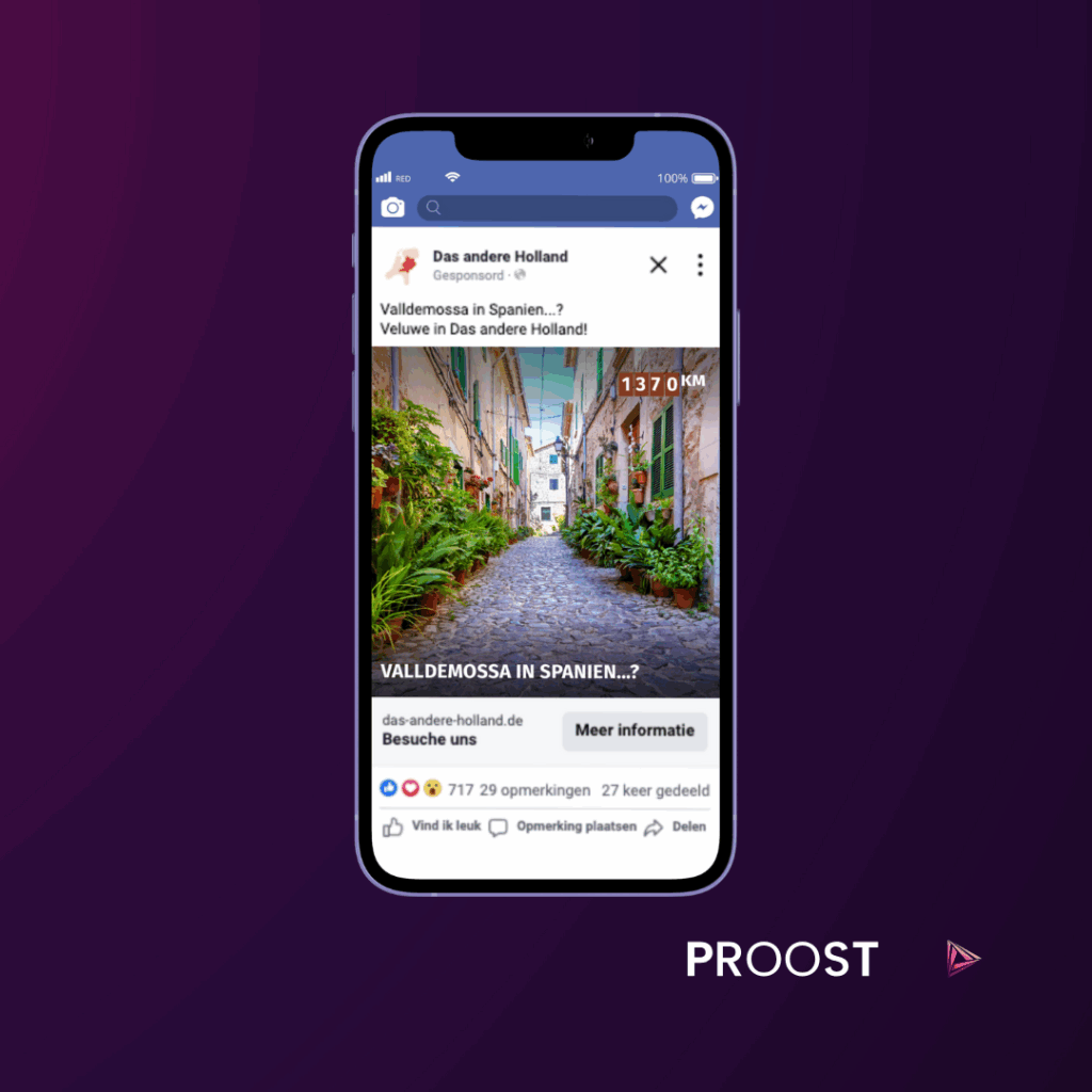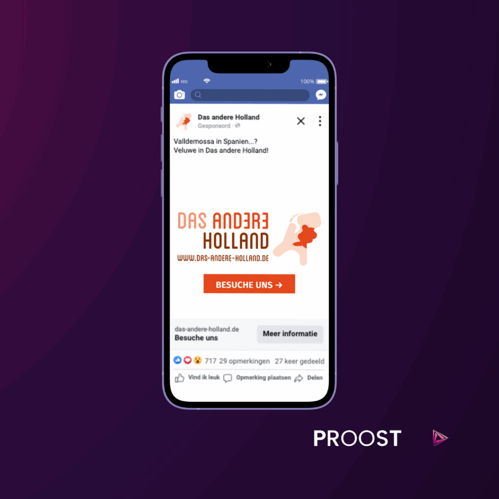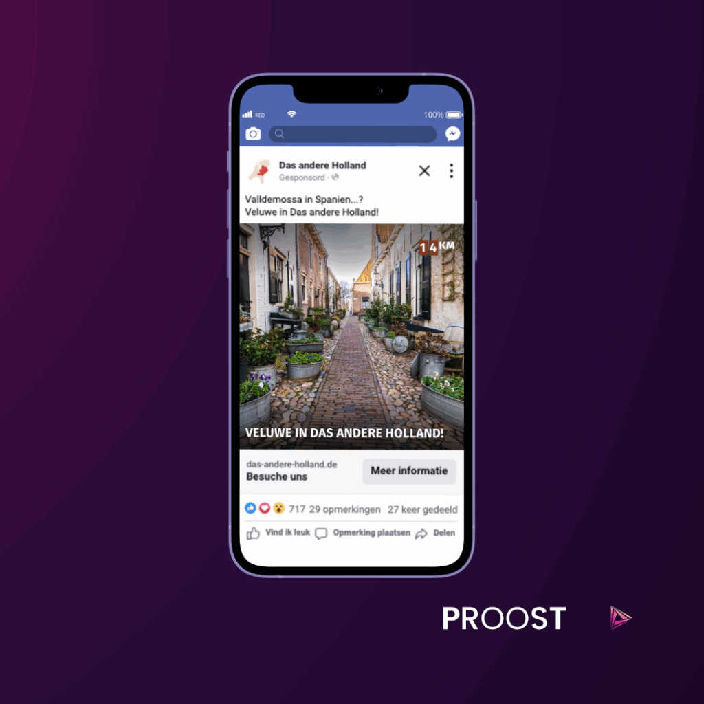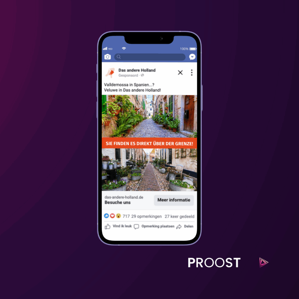 Om de bekendheid in de nieuwe markt te verbeteren hebben we een branding campagne opgezet, waarbij display en social advertising worden gecombineerd. Door optimalisaties, machine learning en AI zijn we in staat relevante bezoekers uit de deelstaten Noordrijn-Westfalen en Niedersachsen en Duitse meerdaagse bezoekers in Oost-Nederland te bereiken.